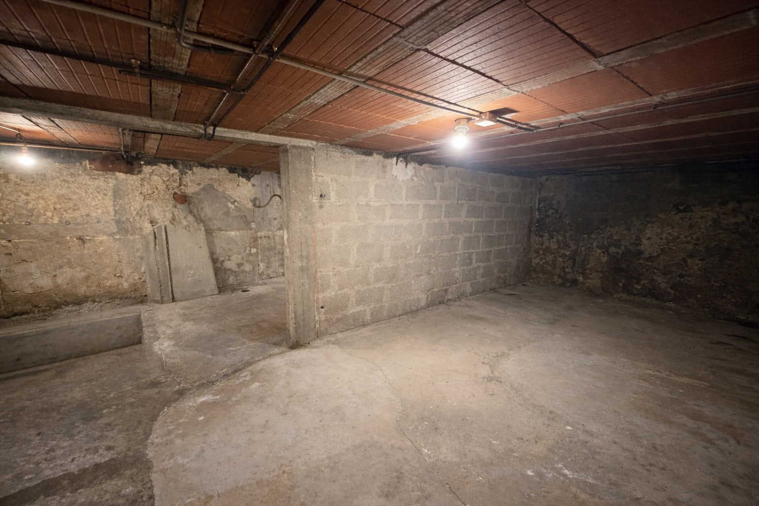 - d’une cave en sous-sol pour stockage ou réserve