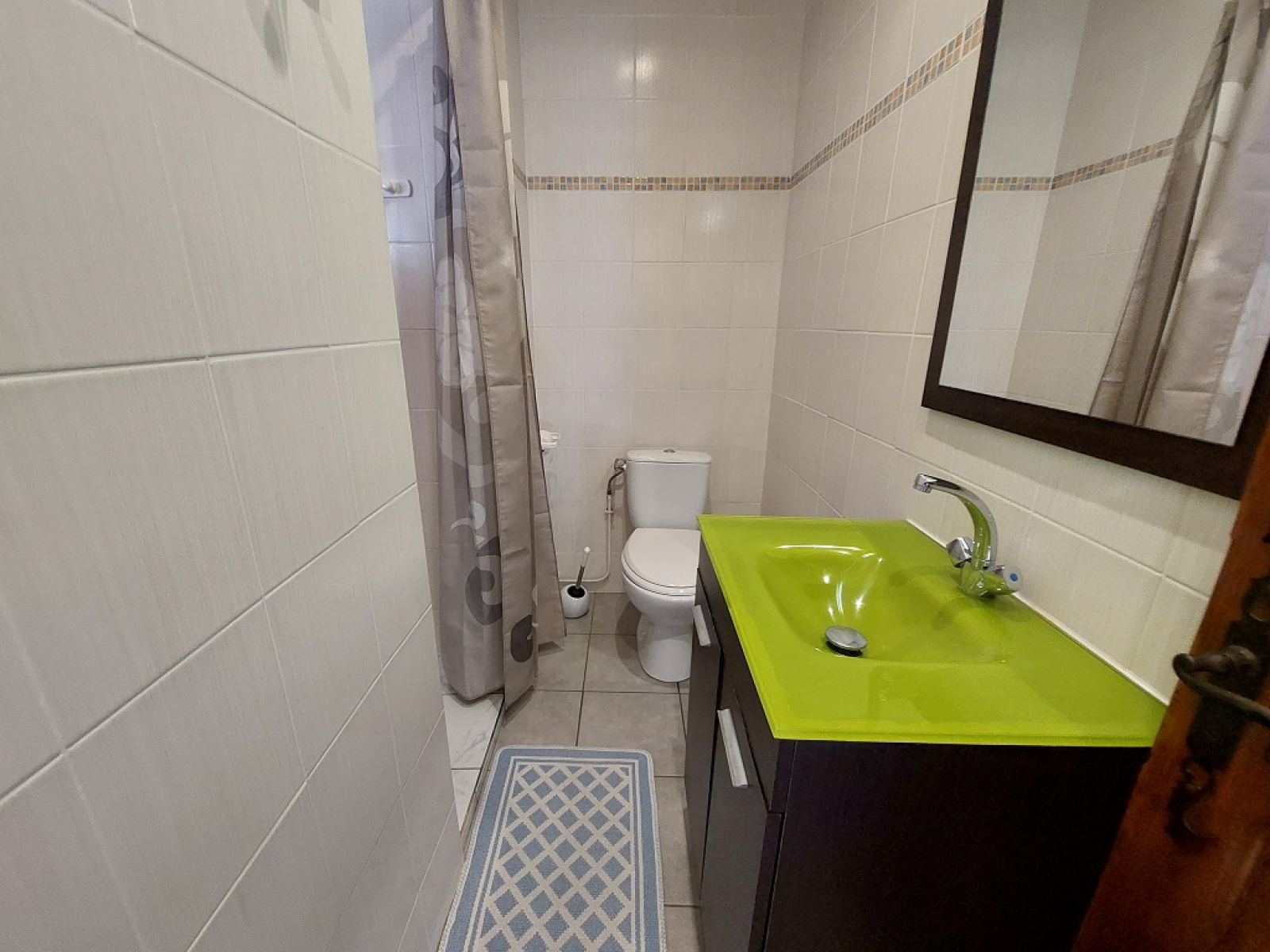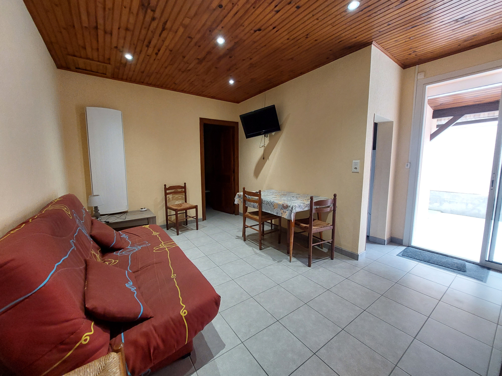 T3 (≈47 m²) : cuisine indépendante équipée, petit salon chaleureux, deux chambres, salle d’eau avec WC et terrasse.