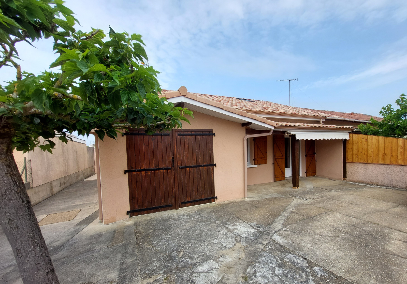Les plus : Garage, Annexe fermée avec barbecue donnant sur une courette intime à l’arrière de la maison, Place de parking privative, Terrain clos de 247 m²