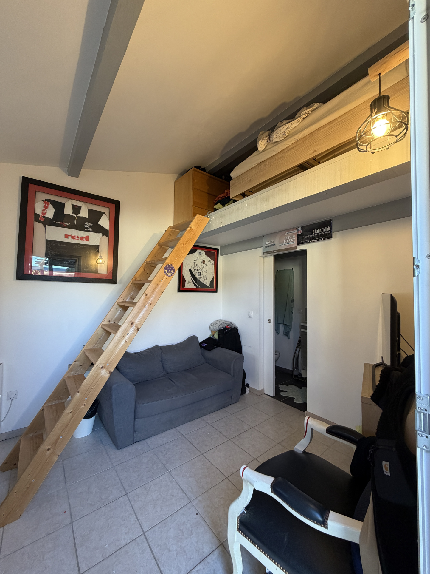 un studio indépendant 11m2 comprenant un espace de vie, une salle d’eau et une mezzanine couchage — idéal pour recevoir, travailler ou un projet locatif,