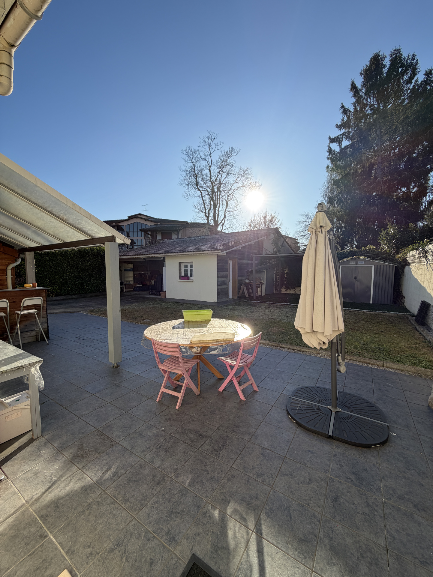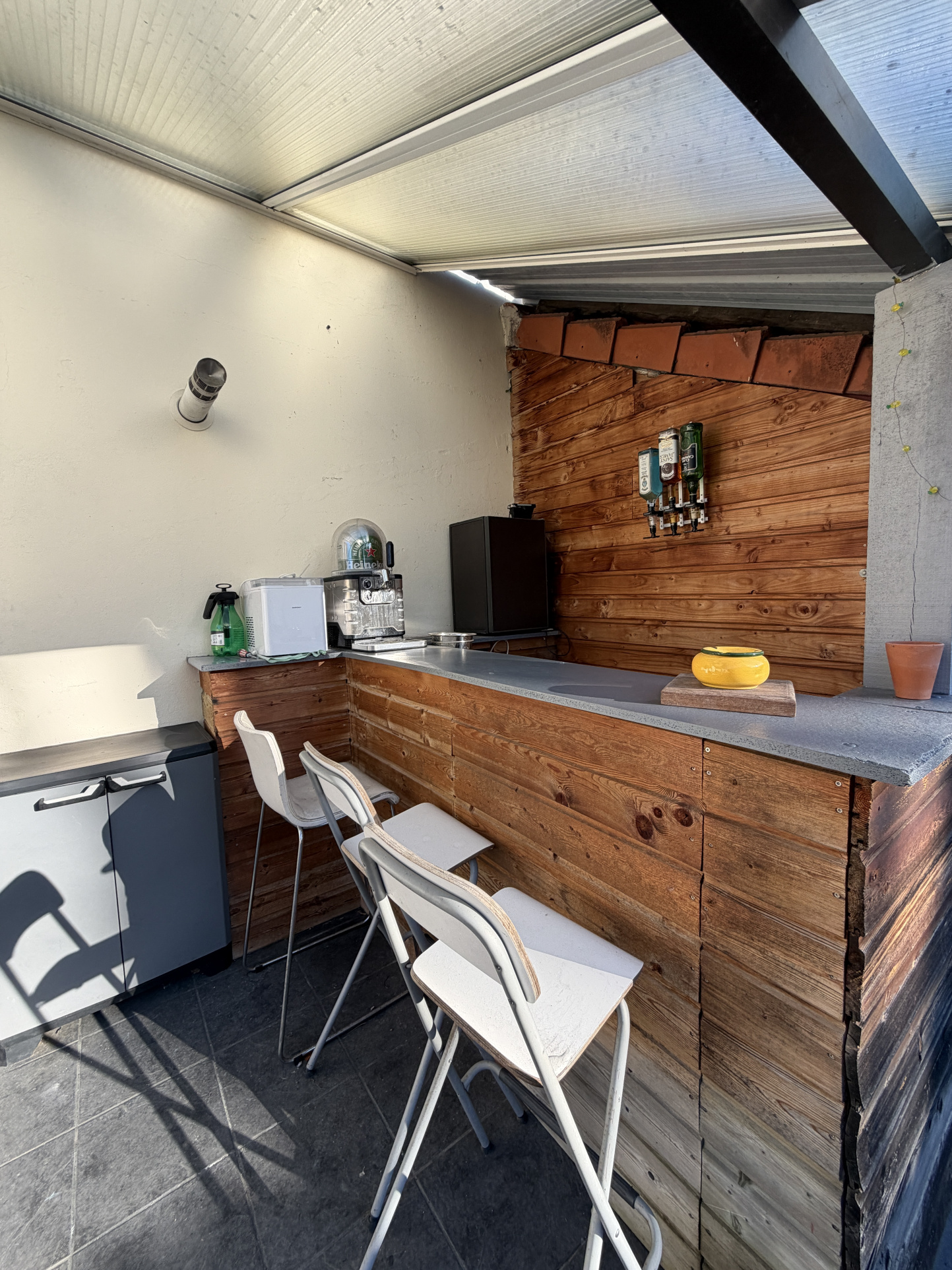 un coin bar / barbecue convivial sous auvent, parfait pour les moments entre famille et amis.