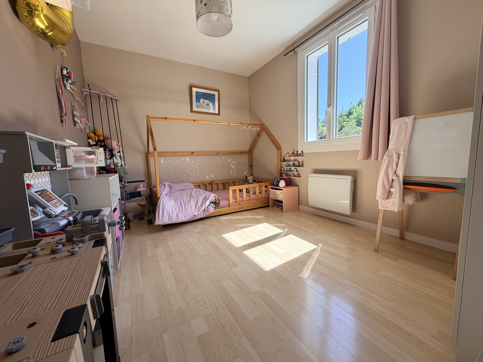 Elle se compose d’une entrée, d’un séjour lumineux, d’une cuisine fonctionnelle avec cellier attenant, de trois chambres, ainsi que d’un bureau idéal pour le télétravail ou une chambre d’appoint.